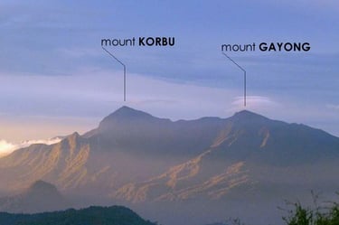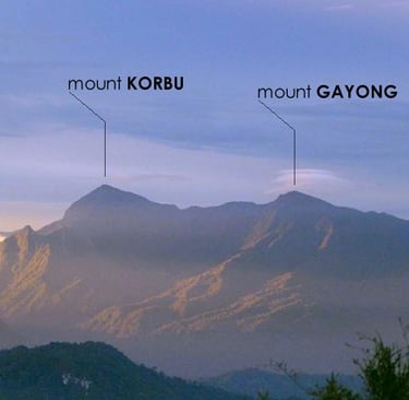 Mount Korbu stands 7162 feet (2183 meters) from sea level. Being the 2nd highest mountain in Malaysia after Mount Tahan. We have another Mount Gayong that stretches out a little bit further from Mount Korbu. Mount Gayong (2,173 m), is the fourth-highest mountain in Peninsular Malaysia, and can be reached in about an hour's trek from the peak of Mount Korbu. Both mountains are located in the State of Perak, Malaysia.